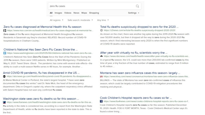 Jag undrade om detta fenomen med nollinfluensafall också upplevdes i USA, så jag sökte efter termen ”nollinfluensafall.”